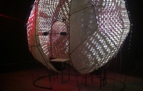 The audience can hear and observe the internal dance unfold through the semi-translucent shell of the Machine. Only a distant shadow remains of the participants’ physical presence, their autonomy replace by a new, shared identity.