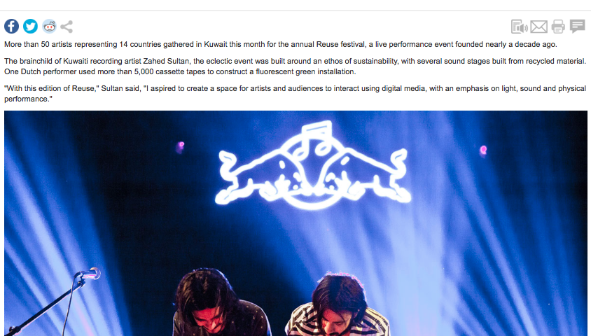 Initially envisioned in 2007 by Zahed Sultan, REUSE is a modular platform for progressive culture and society in the Arab world. For its Kuwait edition in 2016 REUSE will emphasize the informal exchange of ideas between participants and attendees, rather than following a conventionally structured program of events. REUSE invited TodaysArt to co-curate the 2016 edition.